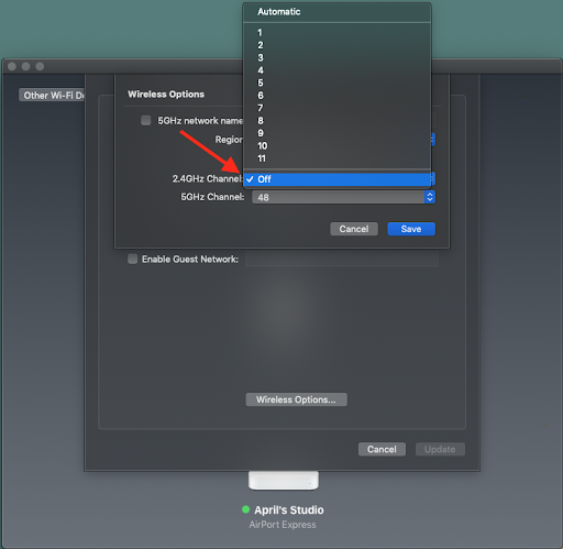 将有问题的设备连接到5 GHz网络。现在它不能连接到2.4 GHz的网络!一旦设备使用了你想要的频段,一定要选择非重叠信道。